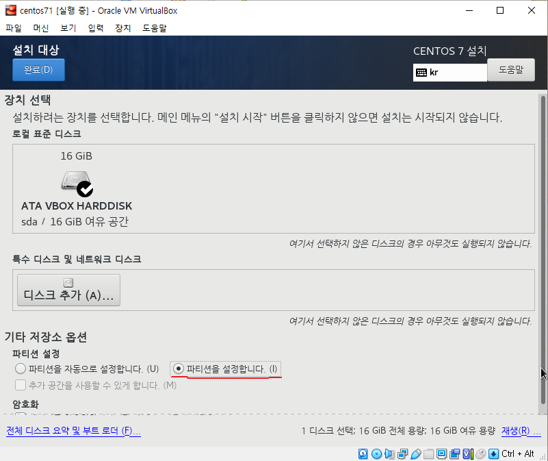 파티션을 수동으로 설정해줍니다.
