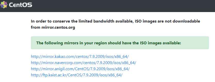 다운로드 페이지에서 CentOS7 버전을 설치할 것이기 때문에