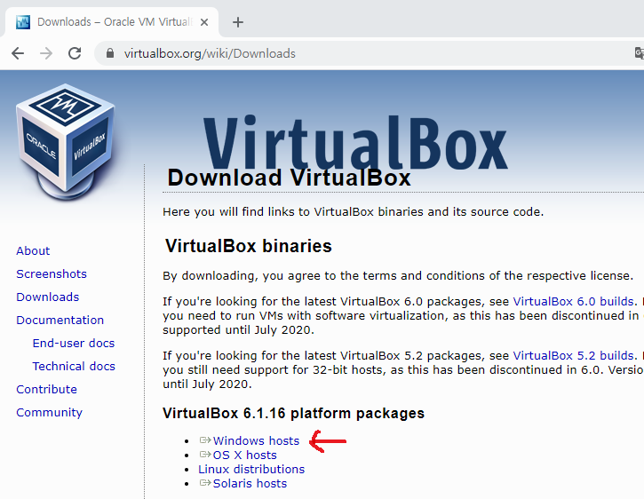 www.virtualbox.org/에 접속하셔서 VirtualBox를 다운로드해줍니다.