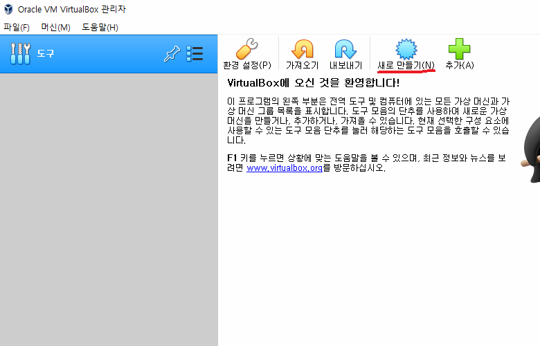 VirtualBox를 실행합니다.