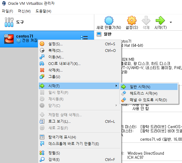 일반시작을 눌러 가상머신을 실행해줍니다.