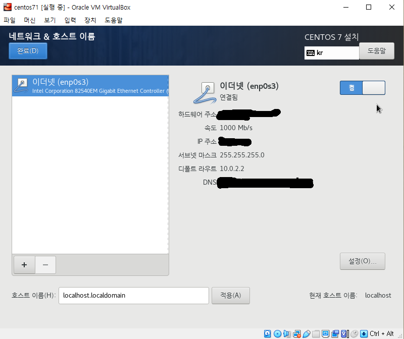 네트워크 및 호스트를 설정해줍니다.