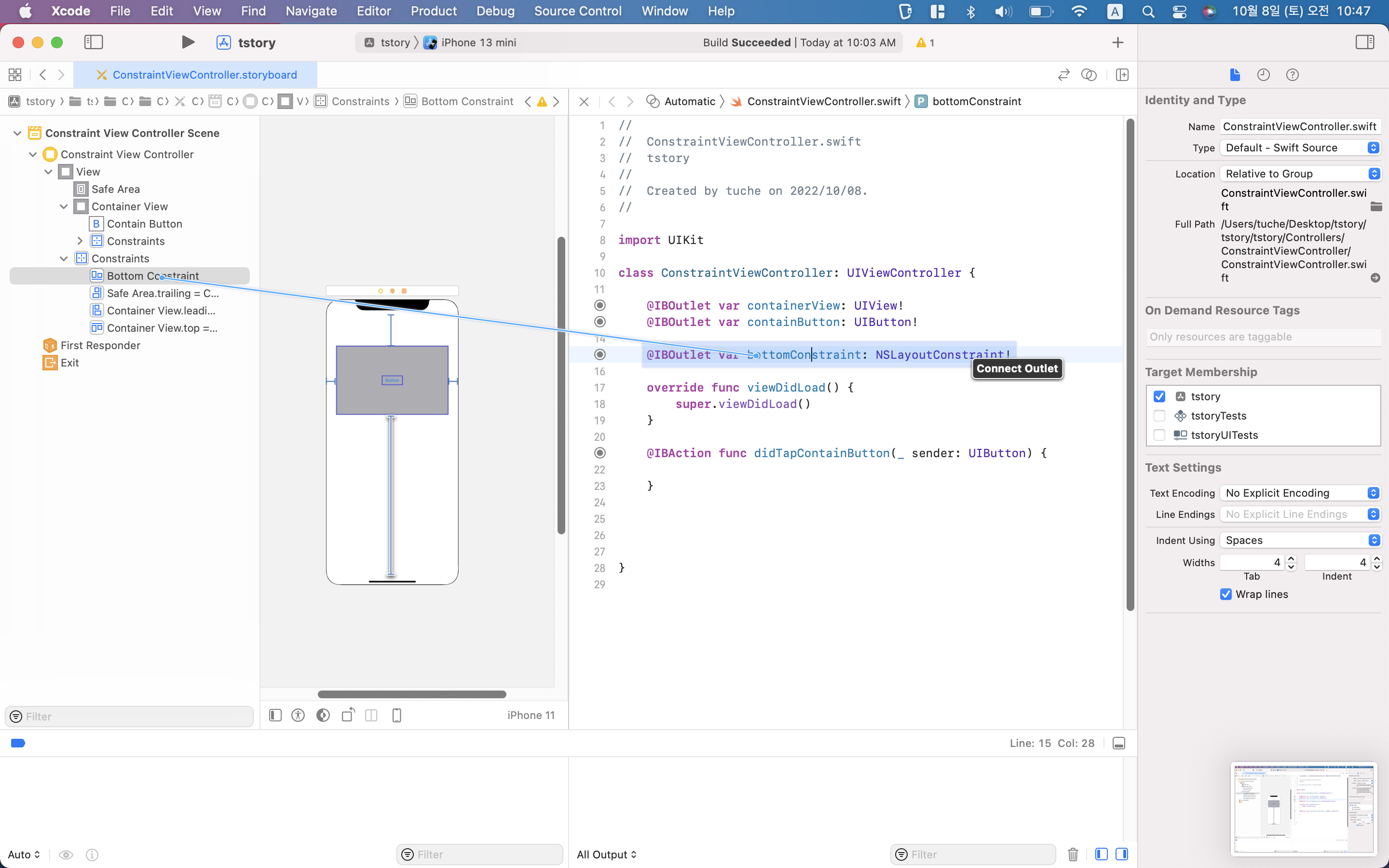 스토리보드에서 작성한 뷰와 Constraint를 코드로 가져와 Constraint 값을 변경하여 동적으로 움직이는 뷰를 만들 수 있습니다.