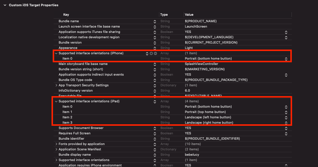 bebelucy - target - Info 화면에서 Supported Interface orientations 설정에서 Landscape 부분을 삭제한다.