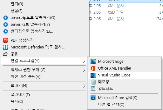 server.xml을 오른쪽 클릭 후 연결프로그램 - 메모장으로 열어줍니다.