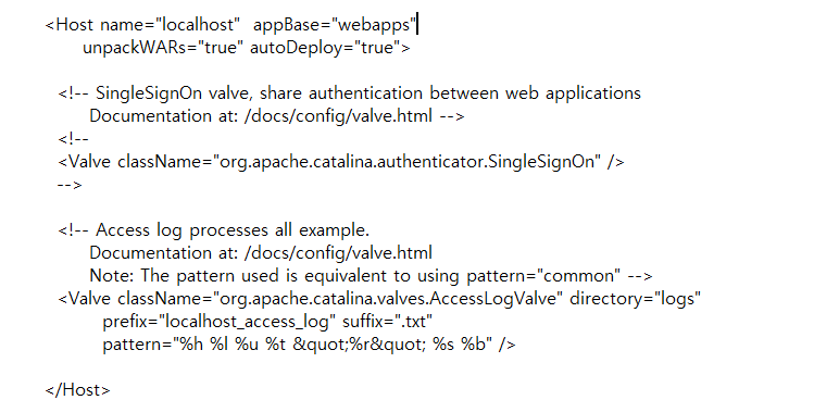 현재 Host name은 localhost이고 appBase는 톰캣에서 webapps 폴더를 참조하고