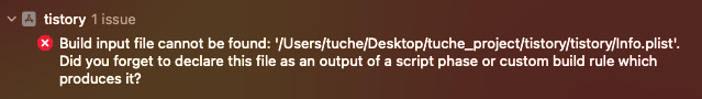 Info.plist 파일위치를 다시 설정함으로써 오류를 해결할 수 있었다.