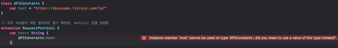 이럴때, APIConstants의 인스턴스를 생성해주거나 변수에 static을 붙여 컴파일 시에 변수가 할당되도록 선언하면 오류가 없어진다.