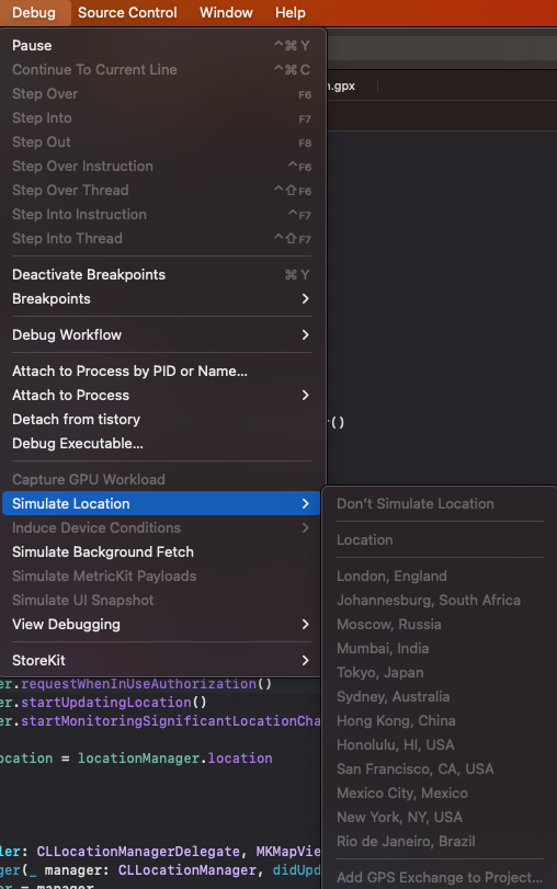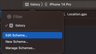 그 후에 빌드했을 때, 시뮬레이터에서 Location 설정하는 것을 확인할 수 있습니다