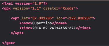 GPX 파일의 형식은 위와 같이 되어있고, wpt태그 안에 있는