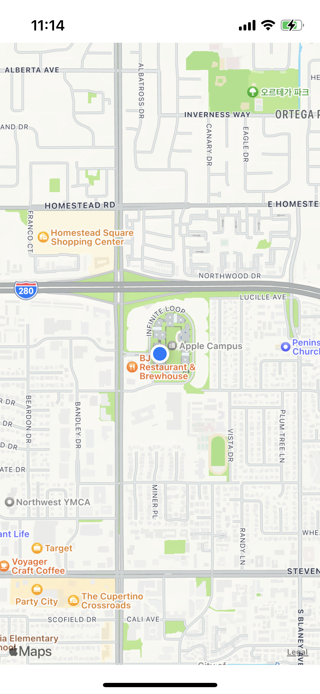 핸드폰에서 MapKit을 활용해 실행하면 위와 같이 좌표가 설정되어있는 것을 확인할 수 있습니다.