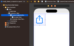 추가로 CollectionView에 이미지를 넣기 위해서는 셀 안에 UIImageView를 추가하고, 셀의 클래스에서 IBOutlet으로 이미지뷰를 연결해주어야합니다.