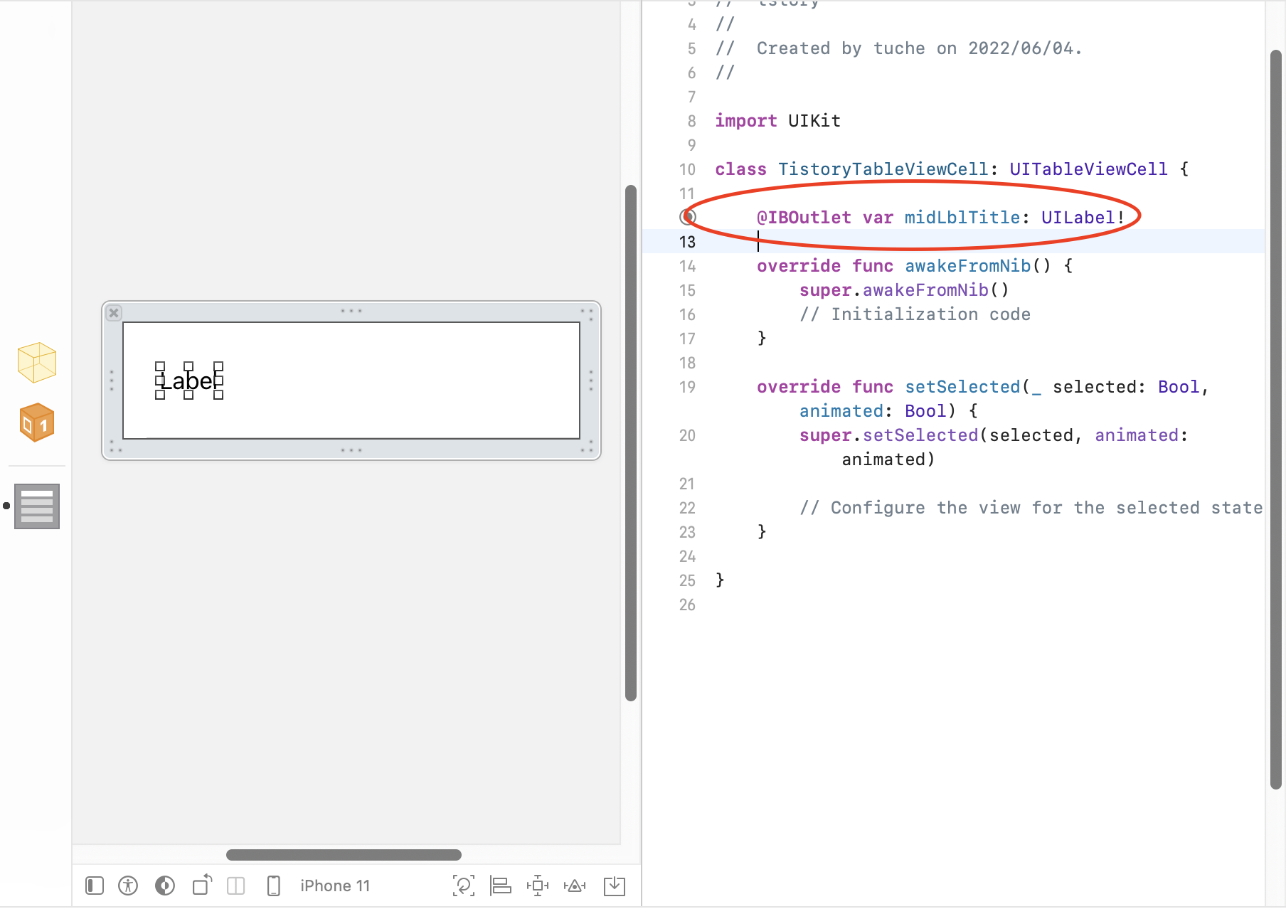 XIB 파일에 있는 뷰를 연결합니다.