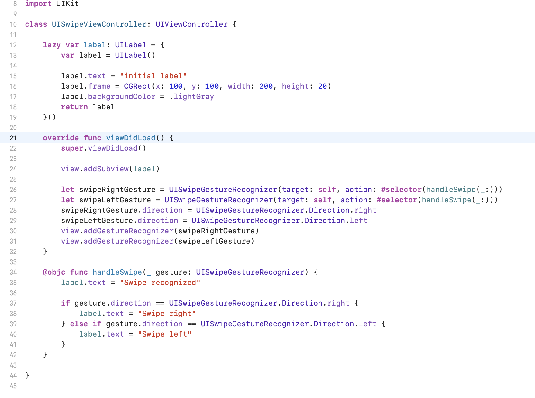 view.addGestureRecognizer(swipeLeftGesture)